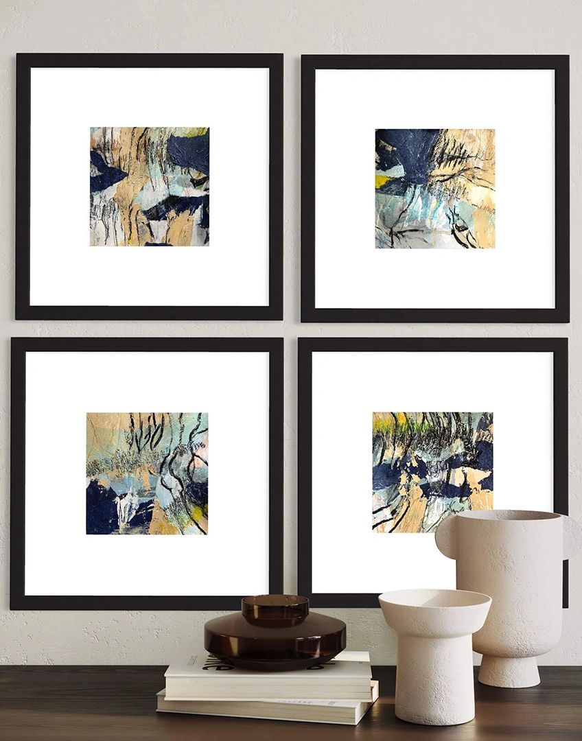 My original artwork is semi-abstract or abstract in nature and is composed of a variety of different mediums, such as ink, acrylics, and pastels. I believe that working in many different mediums allows me to explore different textures and painterly effects.